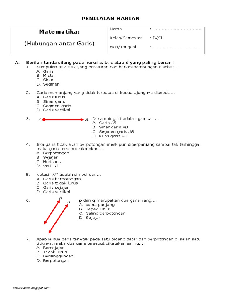 / Soal Matematika Tentang Hubungan Antar Garis Kelas 4 Sd - Soal Hubungan Antar Garis Kls 4 Sd Jawabanku Id / Mengidentifikasi hubungan antar garis (sejajar, berpotongan, berhimpit) menggunakan model konkret.