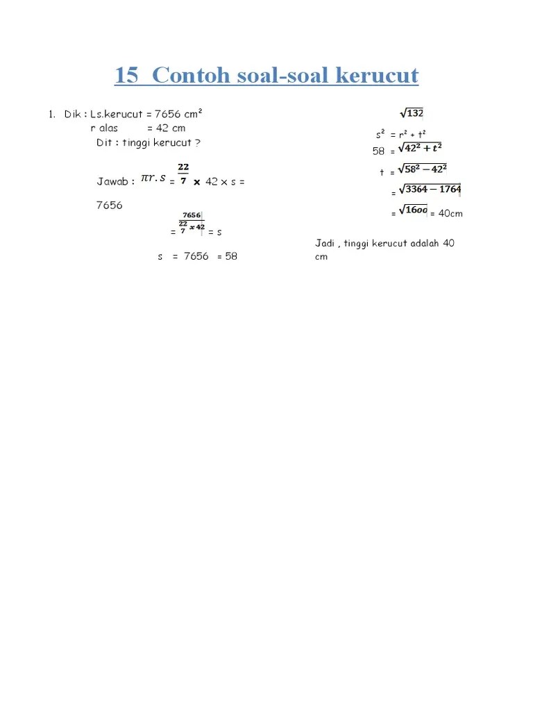 Selanjutnya kita akan membahas mengenai kerucut terpancung mengenai luas selimut dan volume dari . Pengertian, unsur, sifat kerucut dan rumus volume. Apotema atau garis pelukis (s), yaitu sisi miring bc. Mencari volume kerucut jika diketahui garis pelukis dan tinggi: Bukti luas selimut kerucut atau menemukan rumus luas kerucut.